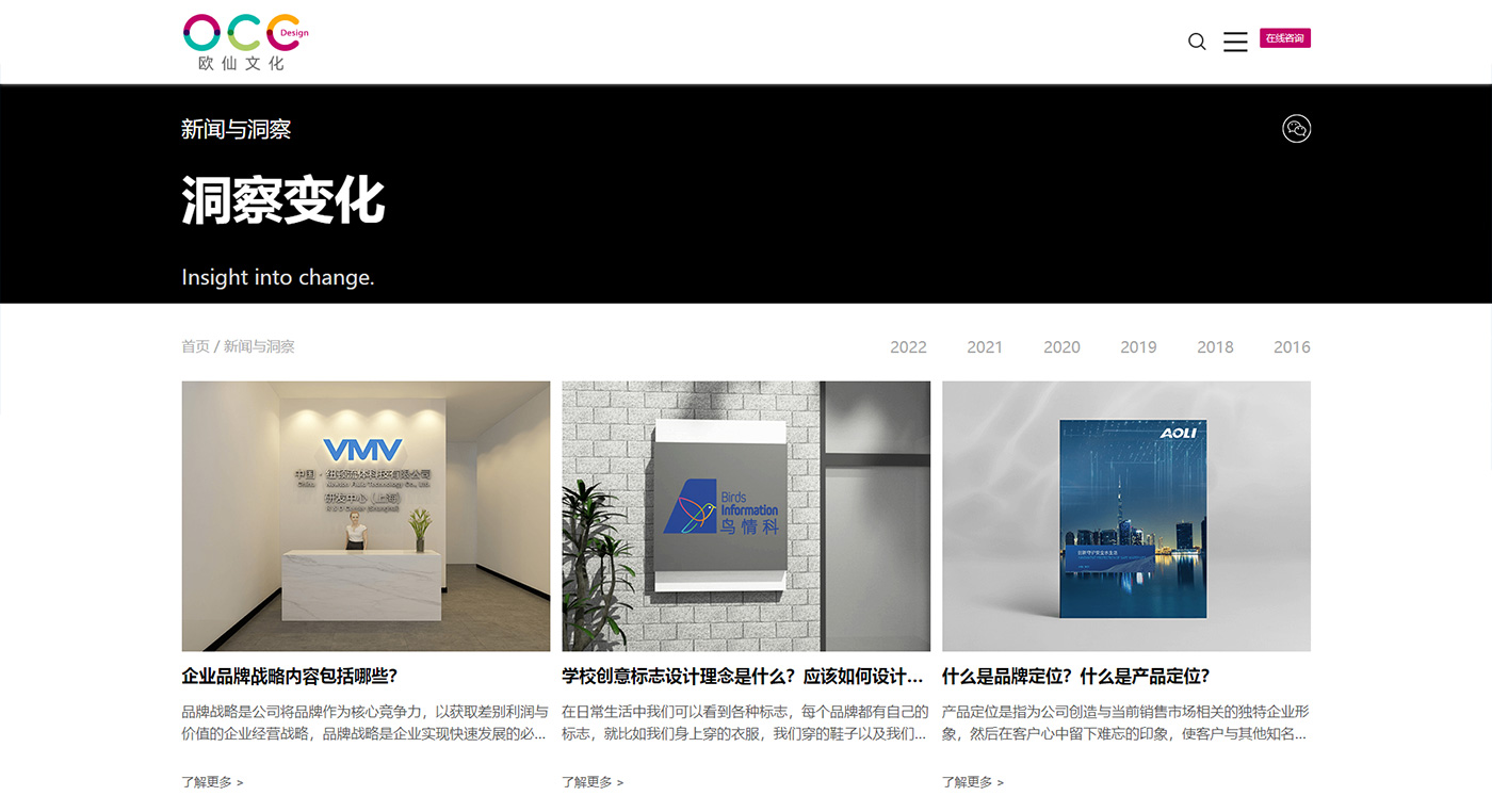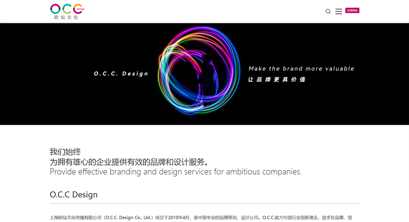 上海歐仙文化是中國專業(yè)的品牌策劃、設(shè)計(jì)公司,致力引領(lǐng)行業(yè)創(chuàng)新理念,追求在品牌、創(chuàng)新、設(shè)計(jì)等領(lǐng)域的卓越表現(xiàn)。設(shè)計(jì)經(jīng)驗(yàn)引導(dǎo)了以下主要領(lǐng)域:品牌塑造、視覺創(chuàng)新、動(dòng)畫視頻、展示空間、虛擬交互、印刷設(shè)計(jì)等