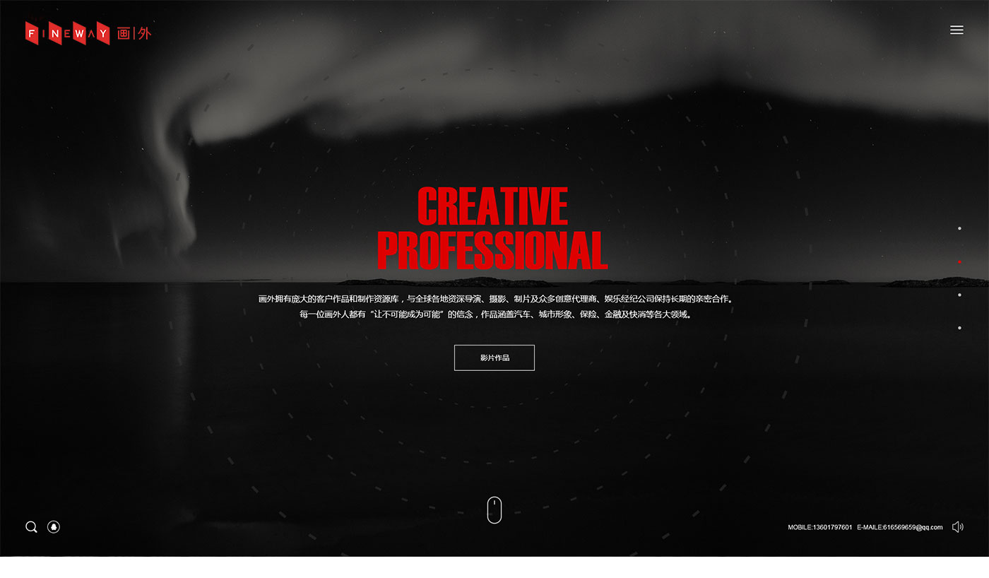畫外匯聚業(yè)內(nèi)資深的精英團隊和優(yōu)質影視資源,為客戶提供前期創(chuàng)意策劃、拍攝執(zhí)行、后期制作一站式的影視內(nèi)容服務。我們的目標是以精準的市場洞察和獨到的視覺創(chuàng)意,為客戶打造富有業(yè)內(nèi)影響力的影視作品,幫助客戶提升品牌價值!