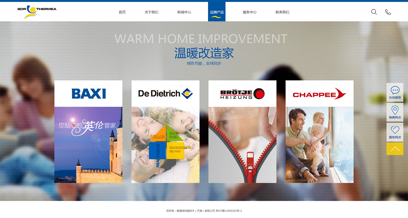 BDR Thermea作為世界三大暖通集團(tuán)之一,向全球提供先進(jìn)的供暖及生活熱水系統(tǒng)以及優(yōu)質(zhì)的服務(wù)。我們致力于為客戶提供高效能、可信賴的循環(huán)加熱解決方案,致力于為客戶提供高效優(yōu)質(zhì)的售后服務(wù)。