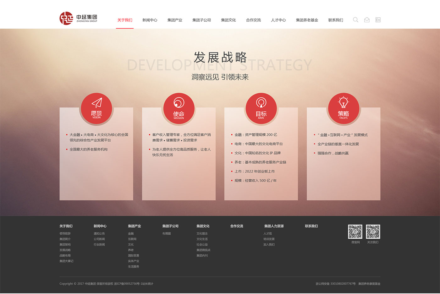 某集團是一家積極開拓產(chǎn)業(yè)跨界融合創(chuàng)新發(fā)展模式,多元化、綜合性的企業(yè)集團,業(yè)務(wù)涵蓋互聯(lián)網(wǎng)、文化、證券、養(yǎng)老、國際貿(mào)易、生活服務(wù)等領(lǐng)域?!爸袨榛?,延無界”是某集團的核心理念。根植于中國文化,某集團始終堅持自己的發(fā)展方向和目標,保持一顆敬畏之心,不斷學(xué)習進步,突破創(chuàng)新,打造自己的核心競爭力,無限延伸發(fā)展,保持穩(wěn)健與定力,基業(yè)長青。
