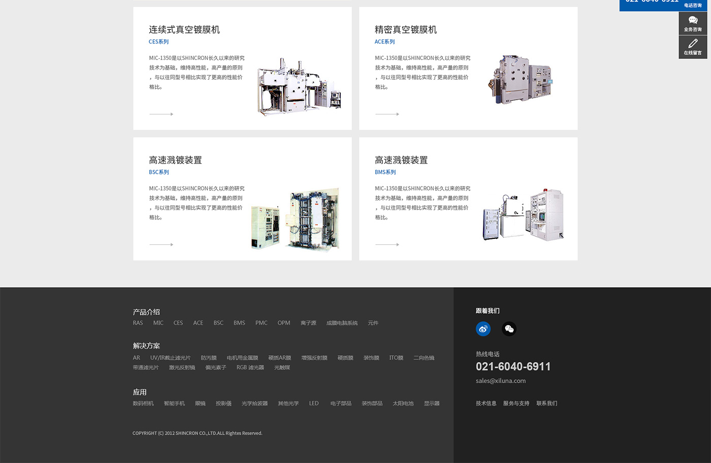 SHINCRON成立于1951年5月,作為一家光學薄膜領域的設備綜合服務企業(yè),力爭發(fā)展成為全世界的龍頭企業(yè)。SHINCRON主營業(yè)務真空鍍膜機及各種關鍵元件的研究、開發(fā)、設計、制造、銷售、技術服務等。