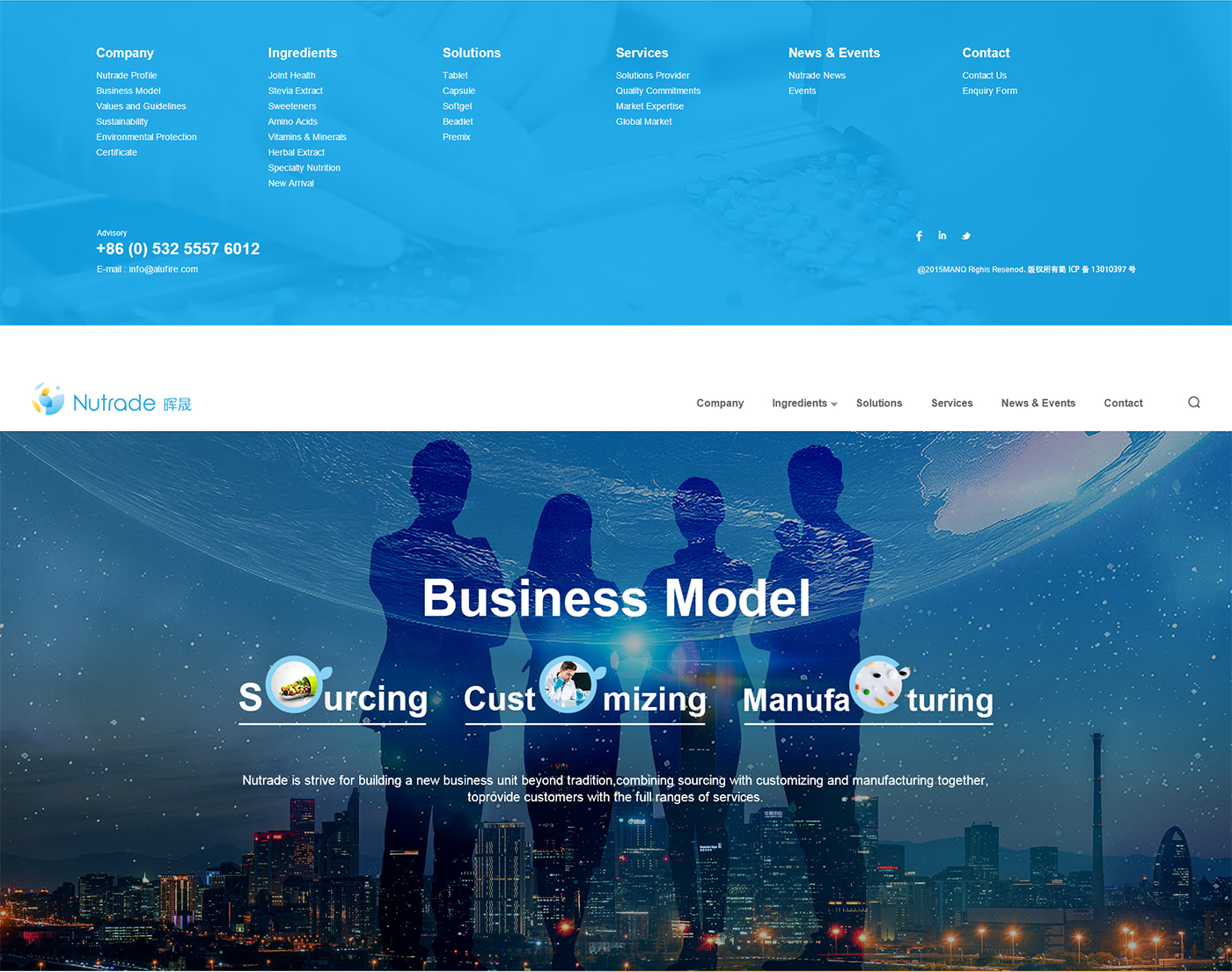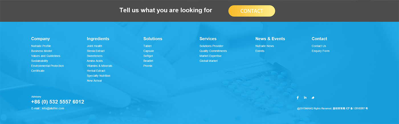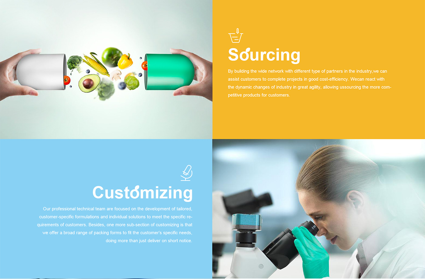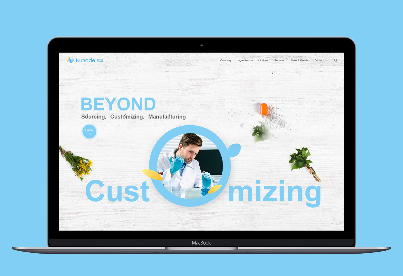 面對(duì)海外要企業(yè),網(wǎng)站首頁(yè)廣告圖以貫穿暉昇制藥從原料到成品的過(guò)程,網(wǎng)站體現(xiàn)暉昇制藥從原料的選材和成份的提煉到成型和包裝。