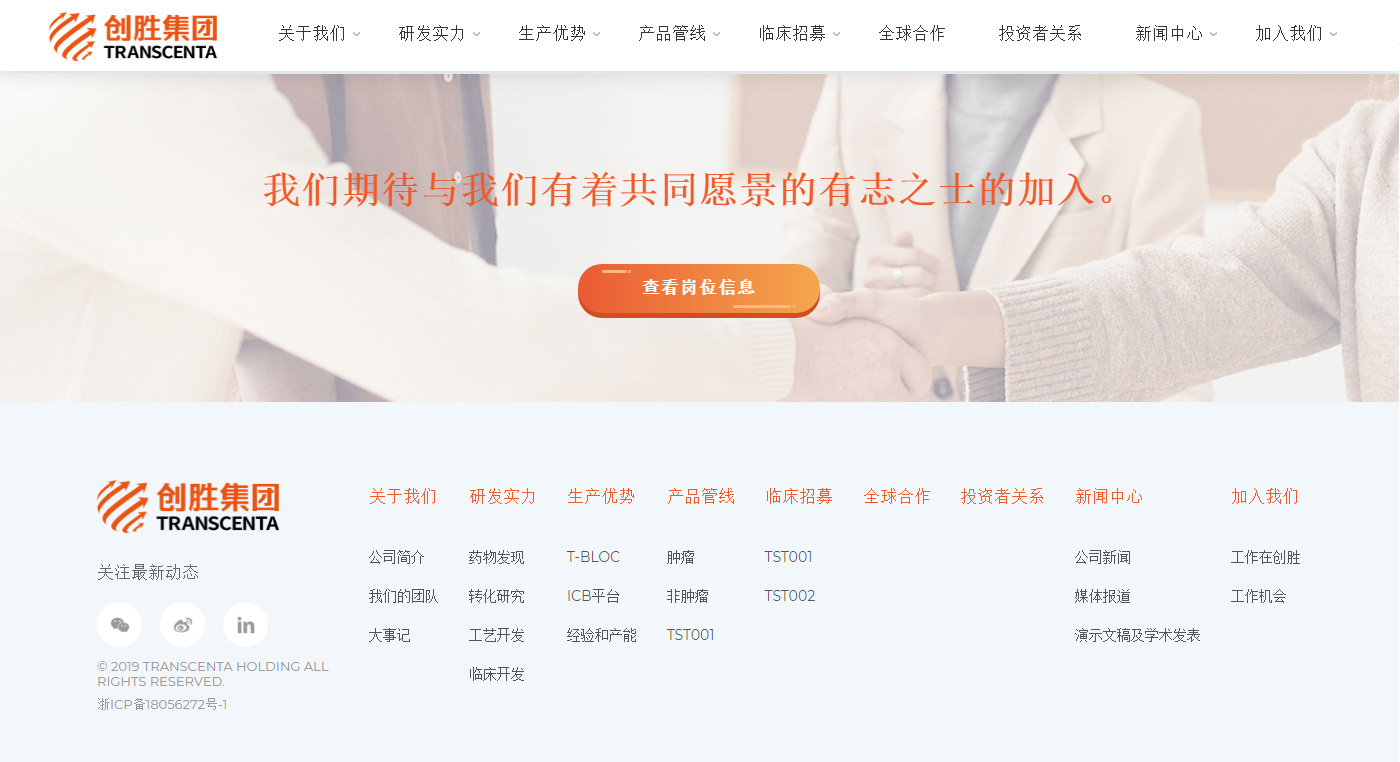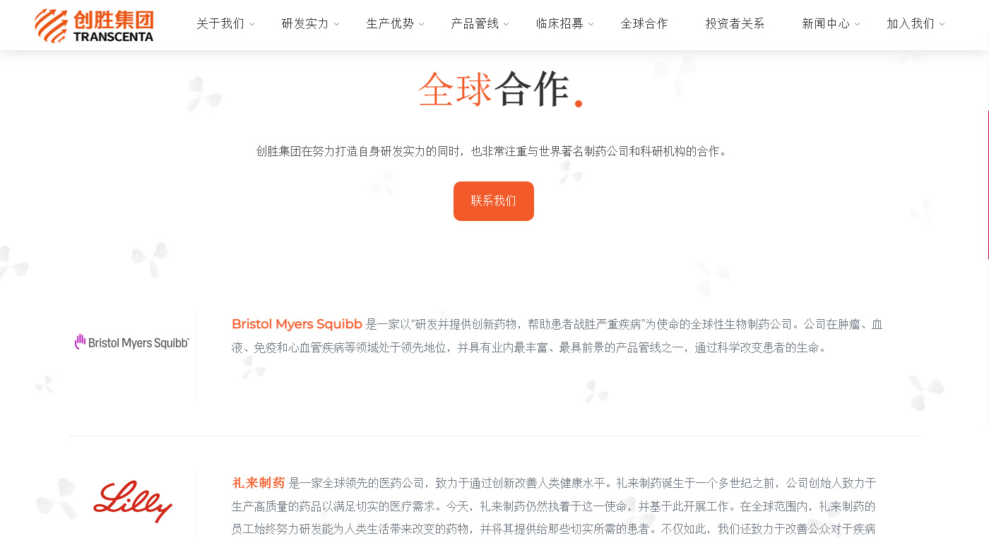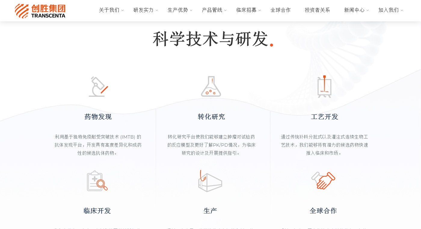 創(chuàng)勝集團是一家在生物藥發(fā)現(xiàn)、開發(fā)、法規(guī)和生產(chǎn)方面具有全整合能力的國際化生物制藥公司,致力于縮短從藥物靶標到BLA的時間,并應用高質量的新一代生物制造工廠,支持內(nèi)部管線和戰(zhàn)略合作伙伴管線分子的開發(fā)和商業(yè)化。