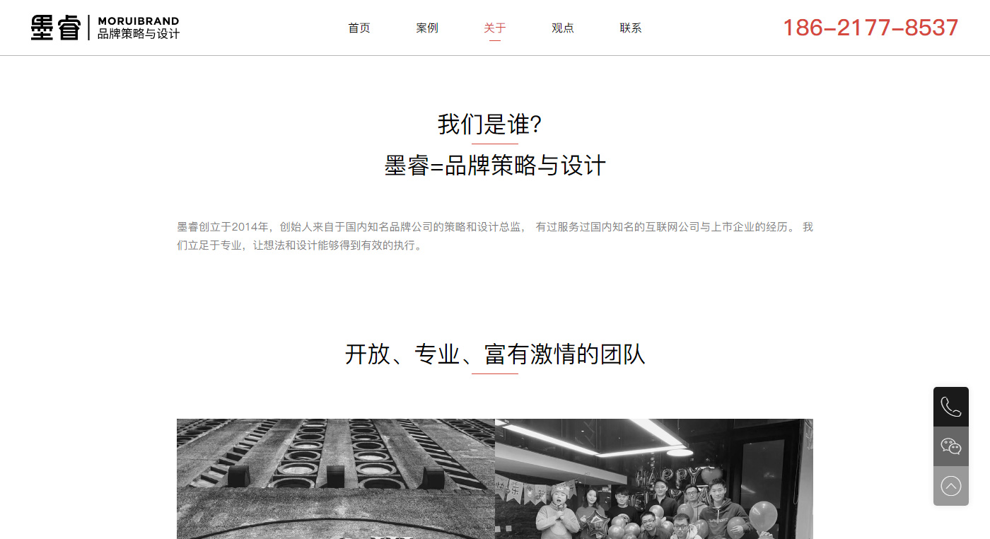 墨睿創(chuàng)立于2014年,創(chuàng)始人來自于國內(nèi)知名品牌公司的策略和設(shè)計總監(jiān), 有過服務(wù)過國內(nèi)知名的互聯(lián)網(wǎng)公司與上市企業(yè)的經(jīng)歷。 我們立足于專業(yè),讓想法和設(shè)計能夠得到有效的執(zhí)行。