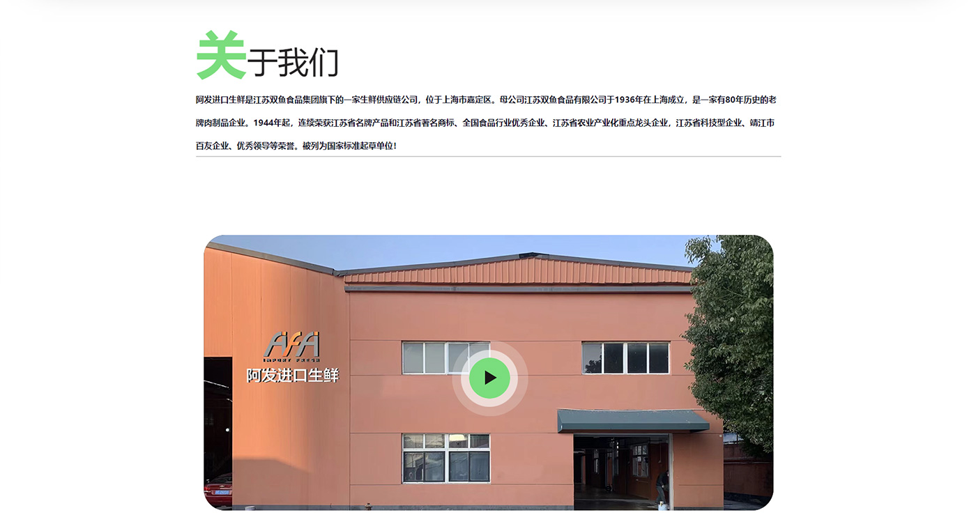 阿發(fā)進(jìn)口生鮮是江蘇雙魚食品集團(tuán)旗下的一家生鮮供應(yīng)鏈公司,位于上海市嘉定區(qū)。母公司江蘇雙魚食品有限公司于1936年在上海成立,是一家有80年歷史的老牌肉制品企業(yè)。1944年起,連續(xù)榮獲江蘇省名牌產(chǎn)品和江蘇省著名商標(biāo)、全國食品行業(yè)優(yōu)秀企業(yè)、江蘇省農(nóng)業(yè)產(chǎn)業(yè)化重點龍頭企業(yè),江蘇省科技型企業(yè)、靖江市百友企業(yè)、優(yōu)秀領(lǐng)導(dǎo)等榮譽(yù)。被列為國家標(biāo)準(zhǔn)起草單位!